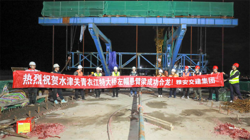 10月31日,成雅快速通道控制性工程水津關(guān)青衣江特大橋左幅懸臂梁成功合龍,標志著大橋主橋部分正式進入合龍階段,為跨江架設(shè)預(yù)制梁提供了縱向通道,也為年底實現(xiàn)半幅貫通打下了堅實基礎(chǔ)。