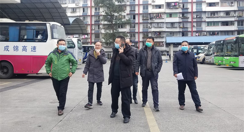 1月30日,集團公司黨委書記、董事長、疫情防控工作領(lǐng)導(dǎo)小組組長漆家華等6名同志到西門車站督導(dǎo)蜀通公司客運班車新型冠狀病毒肺炎疫情防控工作。