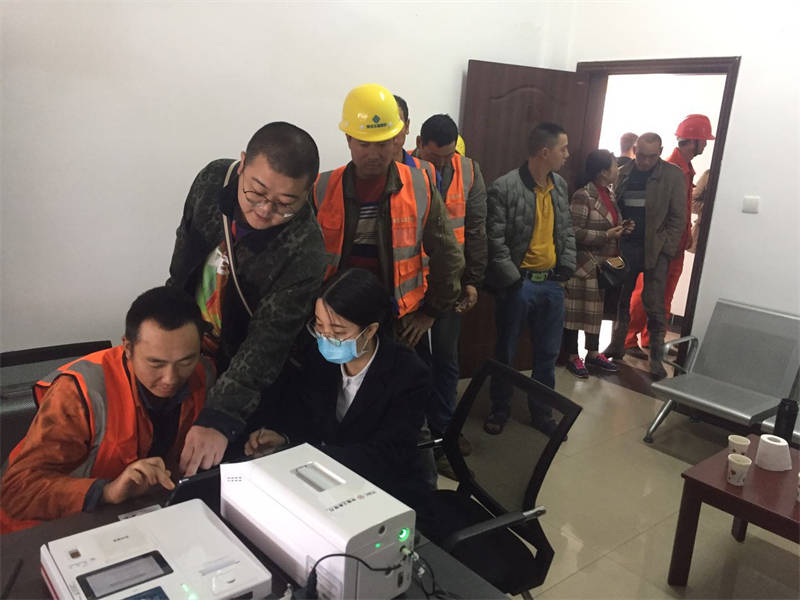駐地現(xiàn)場,工作人員為農(nóng)民工登記、拍照、身份核對、采集、復(fù)印基本信息,建立動(dòng)態(tài)臺賬,從工資專用賬戶注冊、簽字、按手印確認(rèn)到工資卡領(lǐng)取進(jìn)行全過程跟蹤監(jiān)督,并在第一時(shí)間幫助他們激活銀行卡。同時(shí)記錄影像資料以便保存、備查,杜絕了冒領(lǐng)、漏發(fā)的現(xiàn)象。