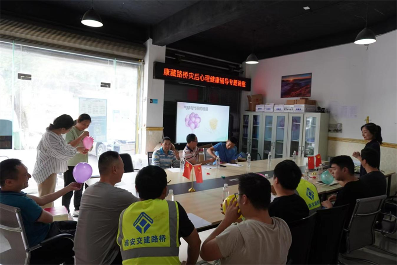 “6.1”蘆山地震發(fā)生后,路橋公司寶興項目部員工親身經(jīng)歷了全過程,第一時間組織人力、物力參加人員道路搶通保通和生產(chǎn)自救,突發(fā)地震災害對職工造成不同程度的心理沖擊;顒又校罄蠋熍c員工們歡聚一堂,以小游戲與員工互動調(diào)整大家心理狀態(tài),圍繞員工心理健康常識、常見心理困擾及應對策略和如何緩解工作壓力、控制個人情緒、提高心理健康水平等內(nèi)容,評估員工心理健康狀況,剖析員工情緒現(xiàn)狀及負面情緒產(chǎn)生的原因,幫助梳理解決方案。