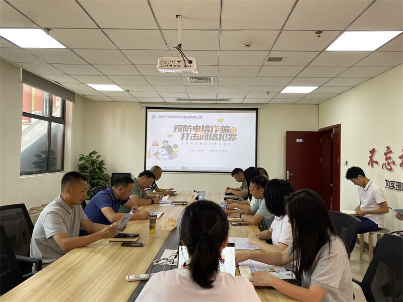 通過反詐騙知識宣講,進一步增強了員工防騙意識。項目公司將通過深入各項目發(fā)放宣傳資料、觀看反詐視頻等多種宣傳形式,持續(xù)開展反詐宣傳工作,有效提升全體員工防詐反詐意識,筑牢預防電信詐騙案件防線,切實維護公司和員工財產(chǎn)安全。