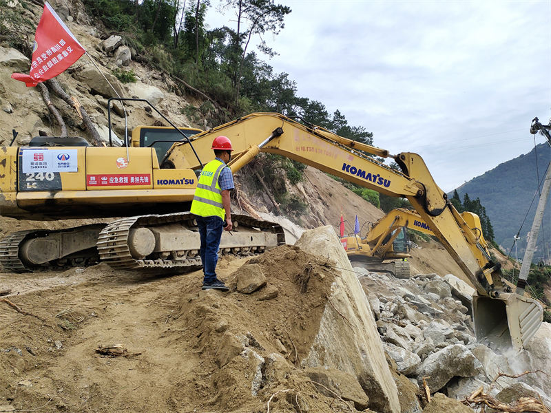 災(zāi)情就是命令,時(shí)間就是生命!交建集團(tuán)聞令而動(dòng),集團(tuán)黨委迅速啟動(dòng)應(yīng)急響應(yīng)機(jī)制,路橋公司火速調(diào)集石棉108線項(xiàng)目人員機(jī)具,第一時(shí)間馳援搶通一線;發(fā)出倡議,動(dòng)員黨員干部增補(bǔ)力量,全力投身搶通保暢任務(wù)。在山崩地裂、亂石嶙峋間穿插著一抹挺身而出的“交建藍(lán)”“黨員紅”。