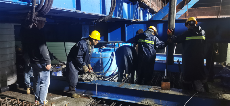 由于中跨合攏段施工要求高,我司于9月10日就開始右幅中跨合攏段鋼筋制作工作。工地現(xiàn)場(chǎng)實(shí)測(cè)最高溫47攝氏度,而混凝土須低于30攝氏度澆筑才能確保質(zhì)量。為此,項(xiàng)目部將一線施工作業(yè)時(shí)間進(jìn)行了調(diào)整,避開了10:00至16:30的高溫時(shí)段,選在溫度偏低的夜間進(jìn)行施工。項(xiàng)目部人員全力以赴與時(shí)間賽跑,與天氣斗爭(zhēng),于9月17日23點(diǎn)開始進(jìn)行混凝土澆筑,經(jīng)過徹夜奮戰(zhàn)于凌晨2點(diǎn)30分完成合攏段全部施工,有效保證了合攏段施工質(zhì)量。