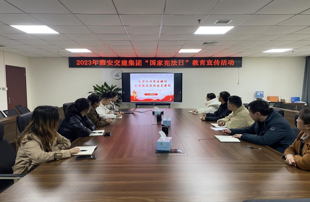今天是我國第十個國家憲法日。為深入學(xué)習(xí)貫徹黨的二十大精神、習(xí)近平法治思想、習(xí)近平總書記關(guān)于憲法的重要論述,12月4日,雅安交建集團(tuán)組織員工開展以“大力弘揚(yáng)憲法精神,全面推進(jìn)法治國企建設(shè)”為主題的“國家憲法日”宣傳教育活動,推動“憲法宣傳周”法治教育宣傳活動落地落實。