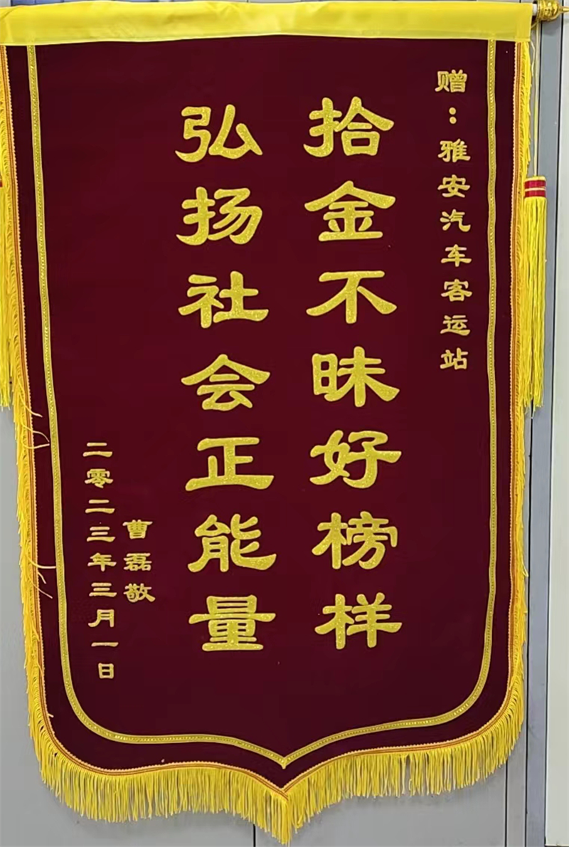 經(jīng)過幾日的多方式查詢失主信息,終于電話聯(lián)系到遠(yuǎn)在河北省的曹磊先生,在核實(shí)失主的身份和包內(nèi)物品信息無誤后,車站通過郵寄錢包及卡、微信轉(zhuǎn)賬現(xiàn)金的方式歸還失主。面對失而復(fù)得的錢包,曹先生對拾到錢包的例檢員劉孝康和車站領(lǐng)導(dǎo)表達(dá)了誠摯的謝意。3月6 日車站收到曹磊先生郵寄的“拾金不昧好榜樣 弘揚(yáng)社會正能量”的錦旗。