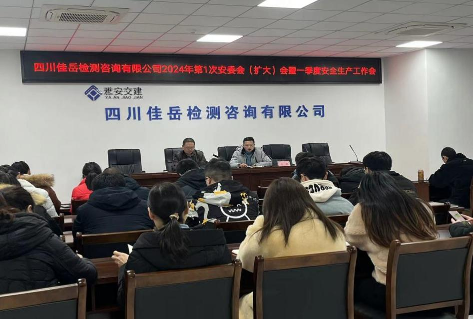 1月5日,四川佳岳檢測咨詢有限公司召開2024年一季度安委會(擴(kuò)大)會議暨安全工作部署會議,傳達(dá)學(xué)習(xí)近期安全生產(chǎn)相關(guān)文件精神,通報(bào)2023年安全生產(chǎn)工作情況,對百日安全攻堅(jiān)專項(xiàng)整治行動進(jìn)行再安排,并簽訂2024年度各級安全責(zé)任目標(biāo)責(zé)任書。
