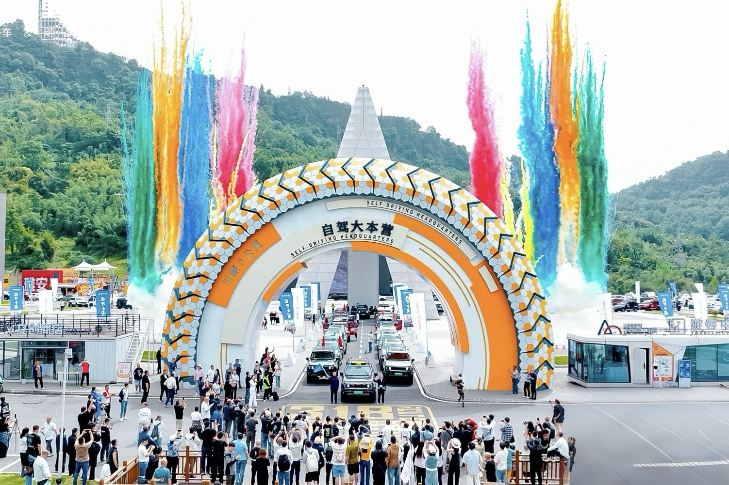 活動(dòng)開(kāi)始,嘉賓參觀了318公路文化體驗(yàn)館,深入了解318國(guó)道文化。隨后召開(kāi)2025四川省旅游租賃行業(yè)推介會(huì),發(fā)布“百萬(wàn)路書計(jì)劃”“悅野中國(guó)”IP及318路線專屬服務(wù)保障政策,并宣布成立BJ40增程俱樂(lè)部,為越野愛(ài)好者提供全方位支持。發(fā)車儀式上,北汽集團(tuán)領(lǐng)導(dǎo)與車主代表共同授旗,在彩煙騰空、車隊(duì)齊鳴中,100余臺(tái)BJ系列越野車分列兩隊(duì)駛出拱門,正式開(kāi)啟為期8天的川藏之旅。