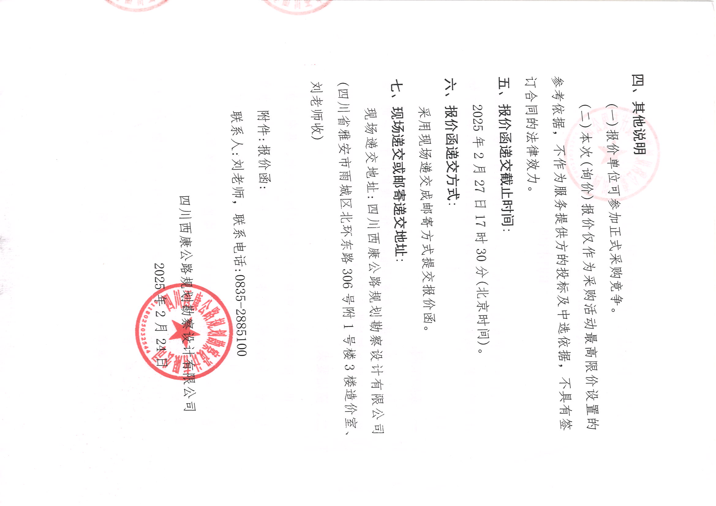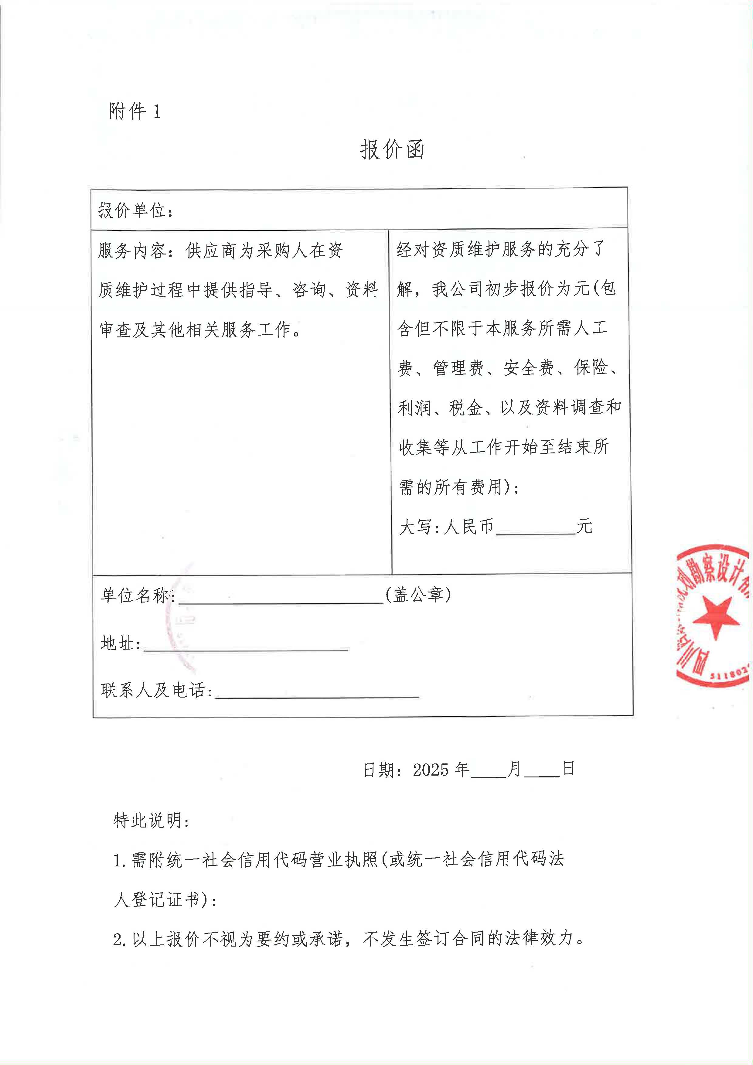 四川西康公路規(guī)劃勘察設(shè)計(jì)有限公司資質(zhì)維護(hù)服務(wù)采購限價(jià)詢價(jià)函