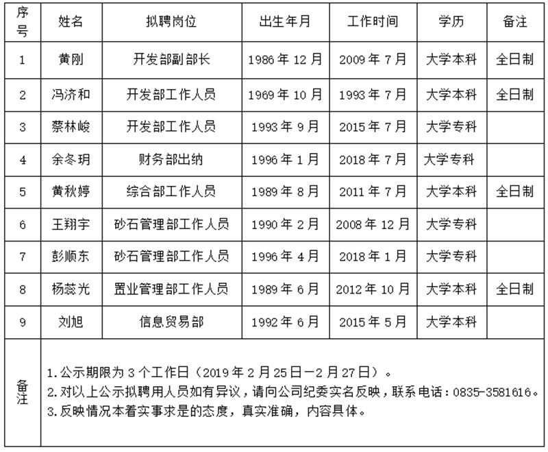 名擬聘用人員予以公示: