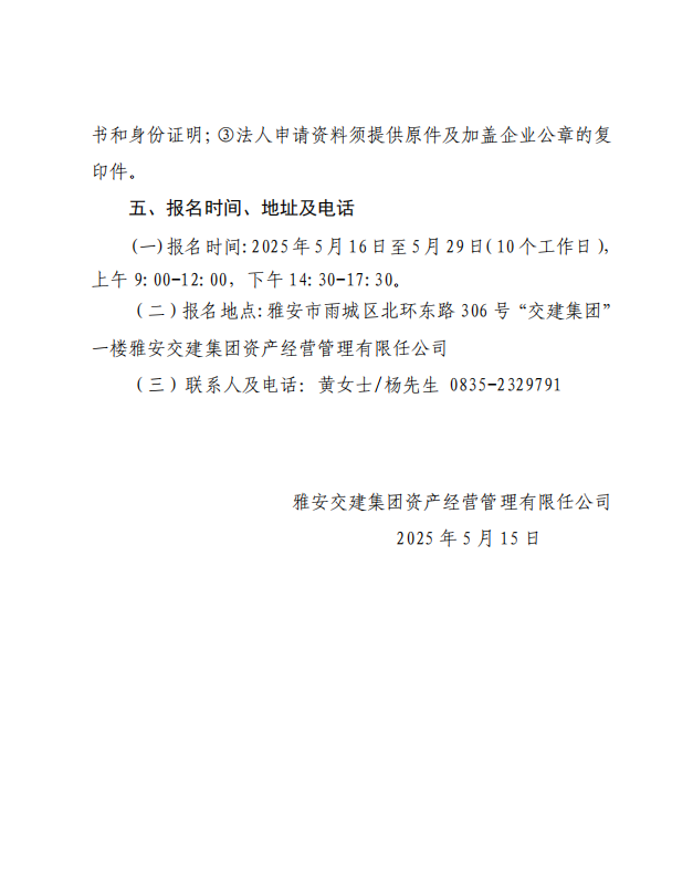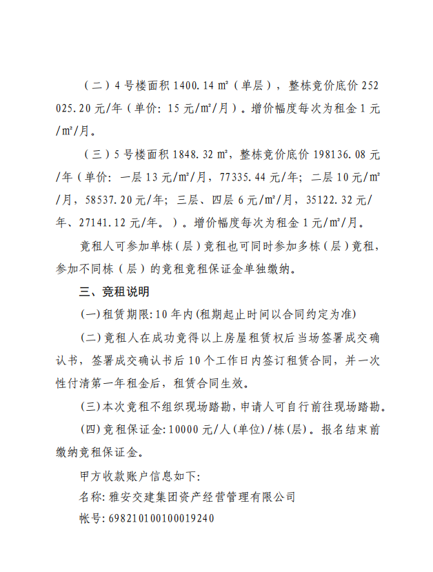 雅安交建集團資產經營管理有限任公司 雨名快速通道(名山服務區(qū))1、4、5號樓 配套用房招租公告