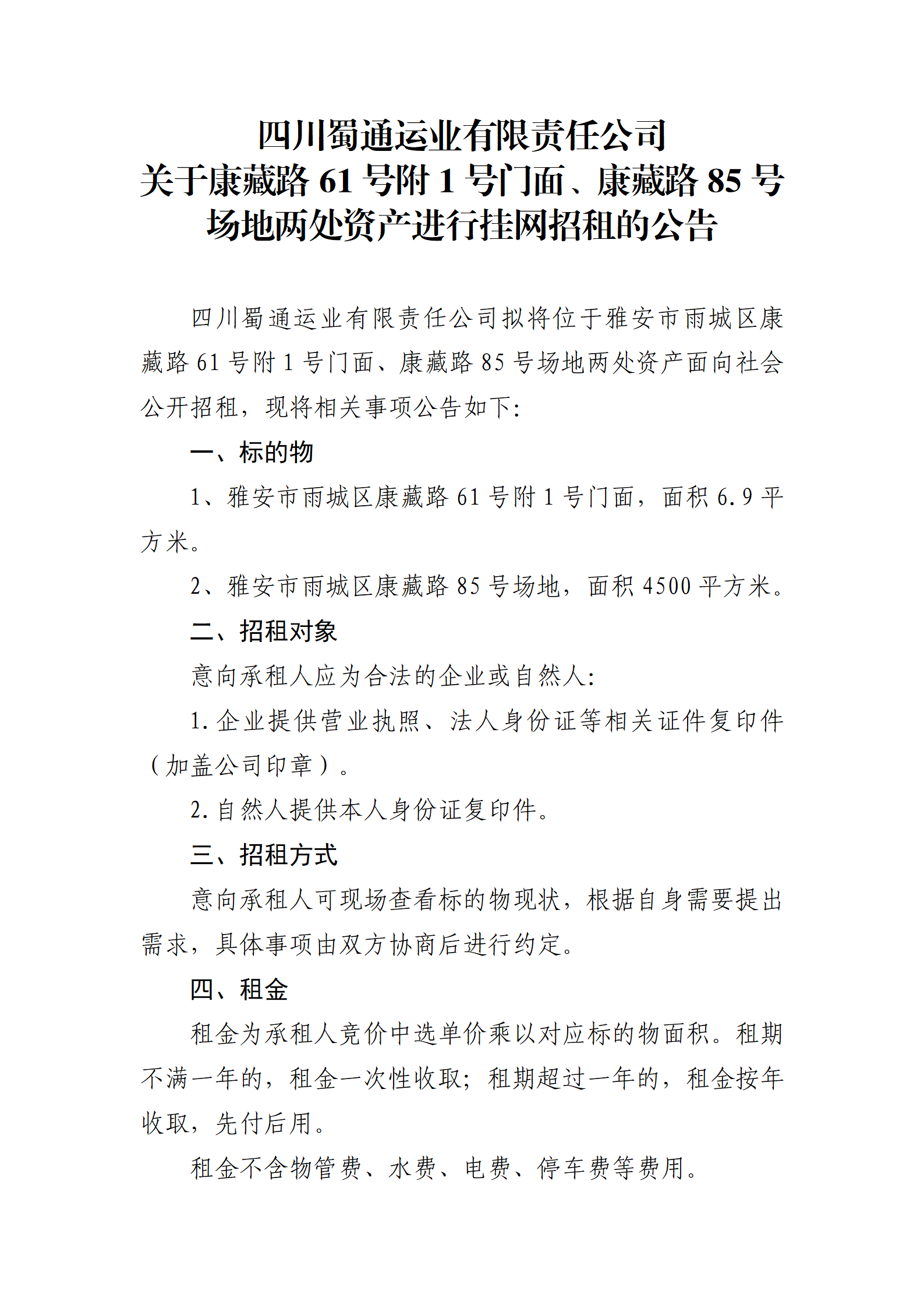 ËÄ´¨Êñͨß\˜I(y¨¨)ÓÐÏÞØŸÈι«Ë¾ êPÓÚ¿µ²ØÂ·61Ì–¸½1Ì–éTÃæ¡¢¿µ²ØÂ·85Ì–ˆöµØƒÉÌŽÙY®aßMÐÐ’ì¾WÕÐ×âµÄ¹«¸æ